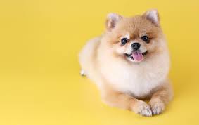 A vertical shot of a cute dog sitting on a fluffy white fabric with a white background