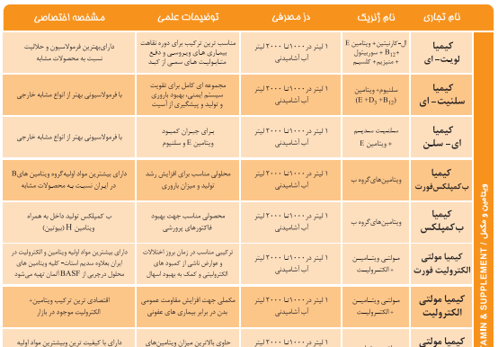 57- AD3EC کیمیا فام بعلت داشتن 50% ویتامین C بیشتر منبع مناسبی از ویتامین C محلول در فصل گرما می باشد.
