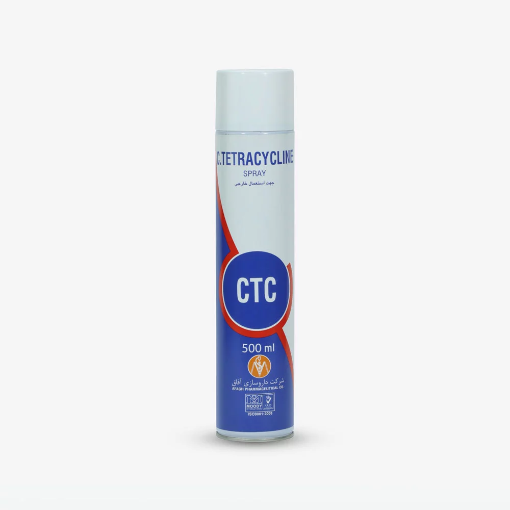 اسپری کلرتتراسايکلين جهت درمان زخمهای پوستی، زخمهای باز، آبسهها، انواع بریدگیها، پاسچولها، عفونتهای ثانويه ناشی از انگلهای خارجی و پس از اعمال جراحی نظير لاپاراتومی، اخته و قطع شاخ مصرف میگردد.