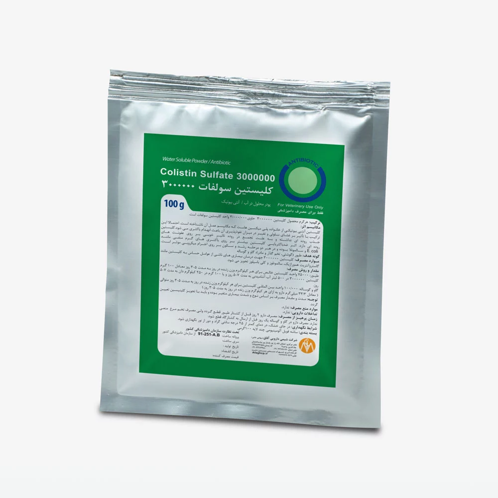 هر گرم محصول کلیستین 3000000 حاوی 3,000,000 واحد بین المللی کلیستین سولفات میباشد.