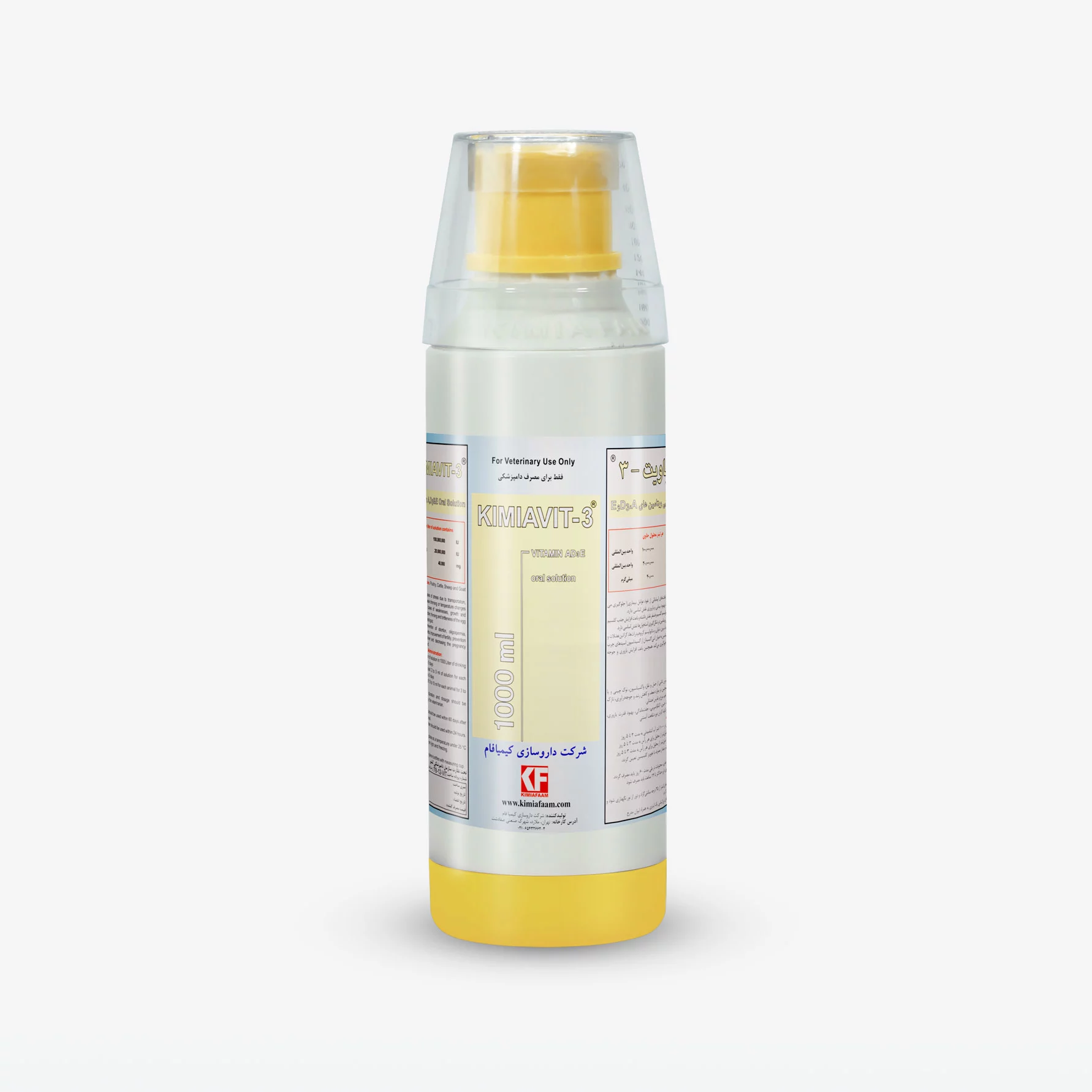 طیور: از محلول کیمیا ویت-3 به میزان 1 لیتر در هزار لیتر آب آشامیدنی به مدت 3 تا 5 روز